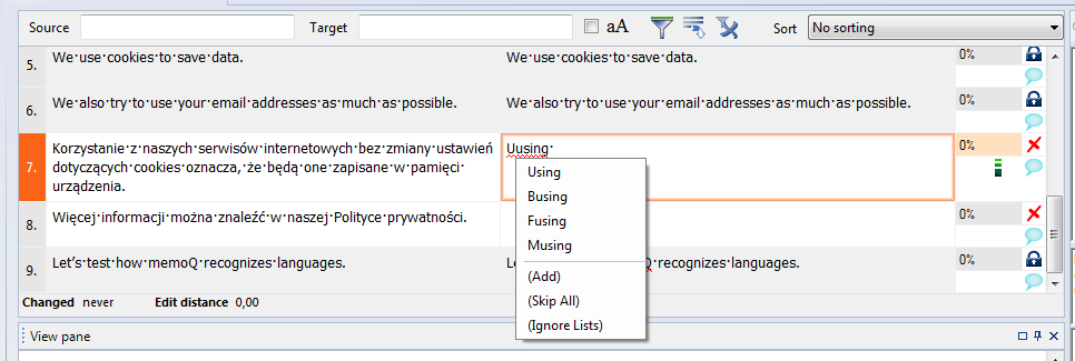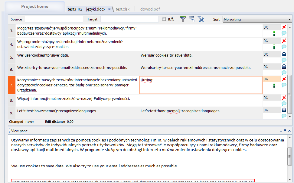 This is my favorite one. memoQ does two things now: it can automatically recognize the source language of a file when you send it to memoQ directly from your hard drive, and it can also lock segments within an imported file if they include languages other than the source.