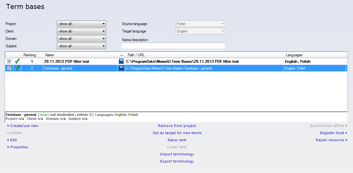 When you use multiple termbases, you can order them and get results from the more important ones first.