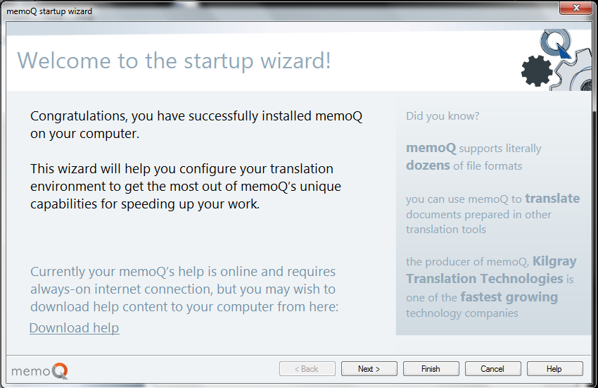 The focus on the user experience is visible from the start. After installing memoQ, you can go through startup wizard (screen above) to set up some basic settings, such as: