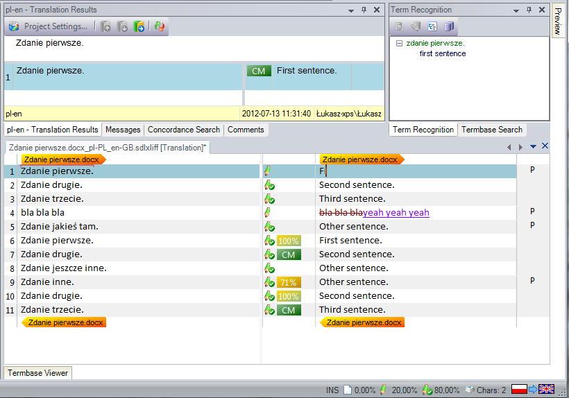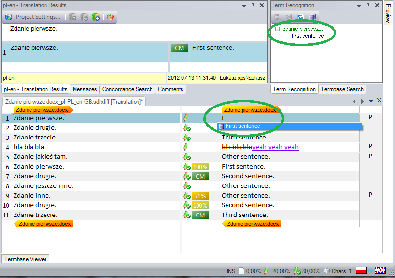 Trados Studio 2011 - po zmianie ustawienia CaseSensitive