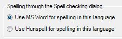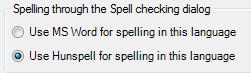 Aby skorzystać ze słownika Hunspell, wystarczy po wybraniu języka zaznaczyć opcję Use Hunspell for spelling in this language,