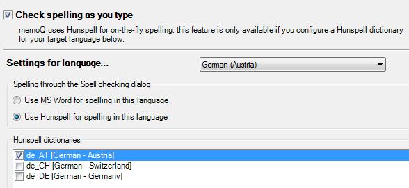 Dla przykładu w przypadku, gdy język docelowy projektu to German (Austria), możesz ustalić, aby program podczas sprawdzania pisowni korzystał ze słownika de_AT .
